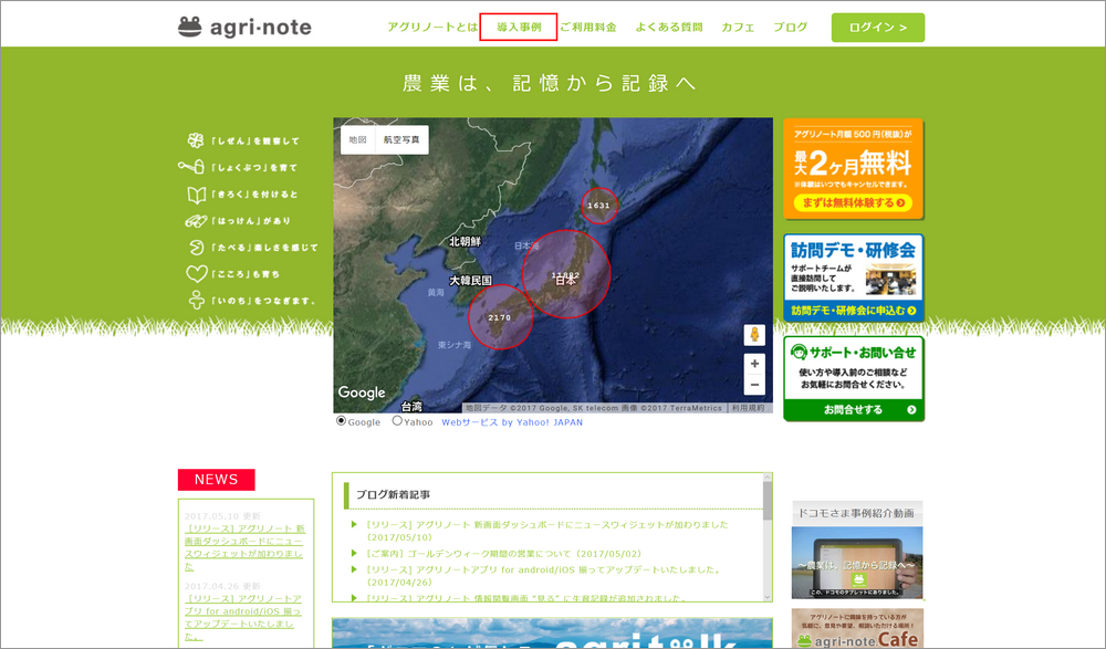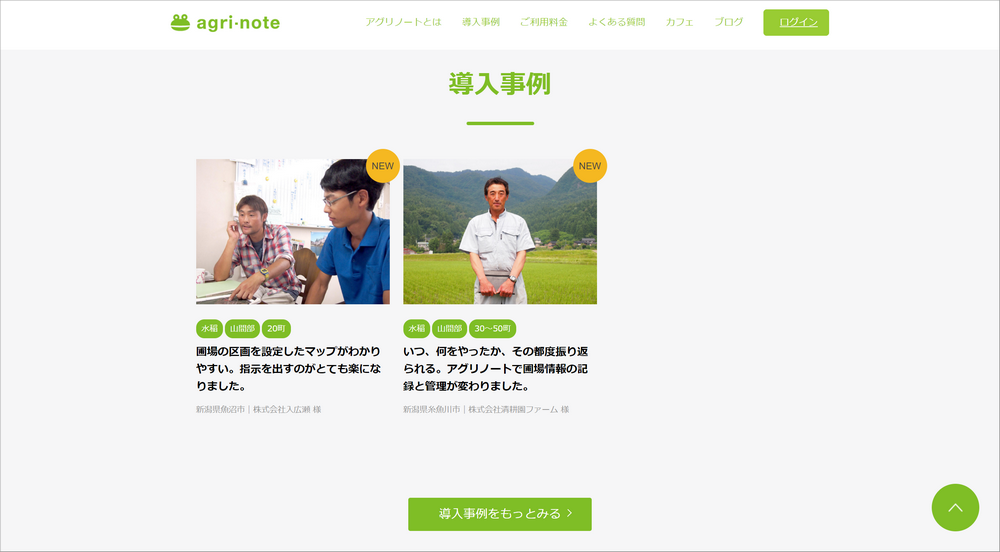 トップページ 導入事例 アグリノートホームページに導入事例を公開しました