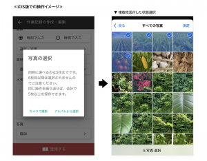 今回のアップデートにより、アプリからの記録作成時に複数の画像をまとめて添付できるようになりました。