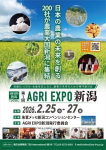 2月25日(水)から3日間、新潟市・朱鷺メッセを会場に初開催のイベント『第1回 AGRI EXPO新潟』への出展が決定しました。